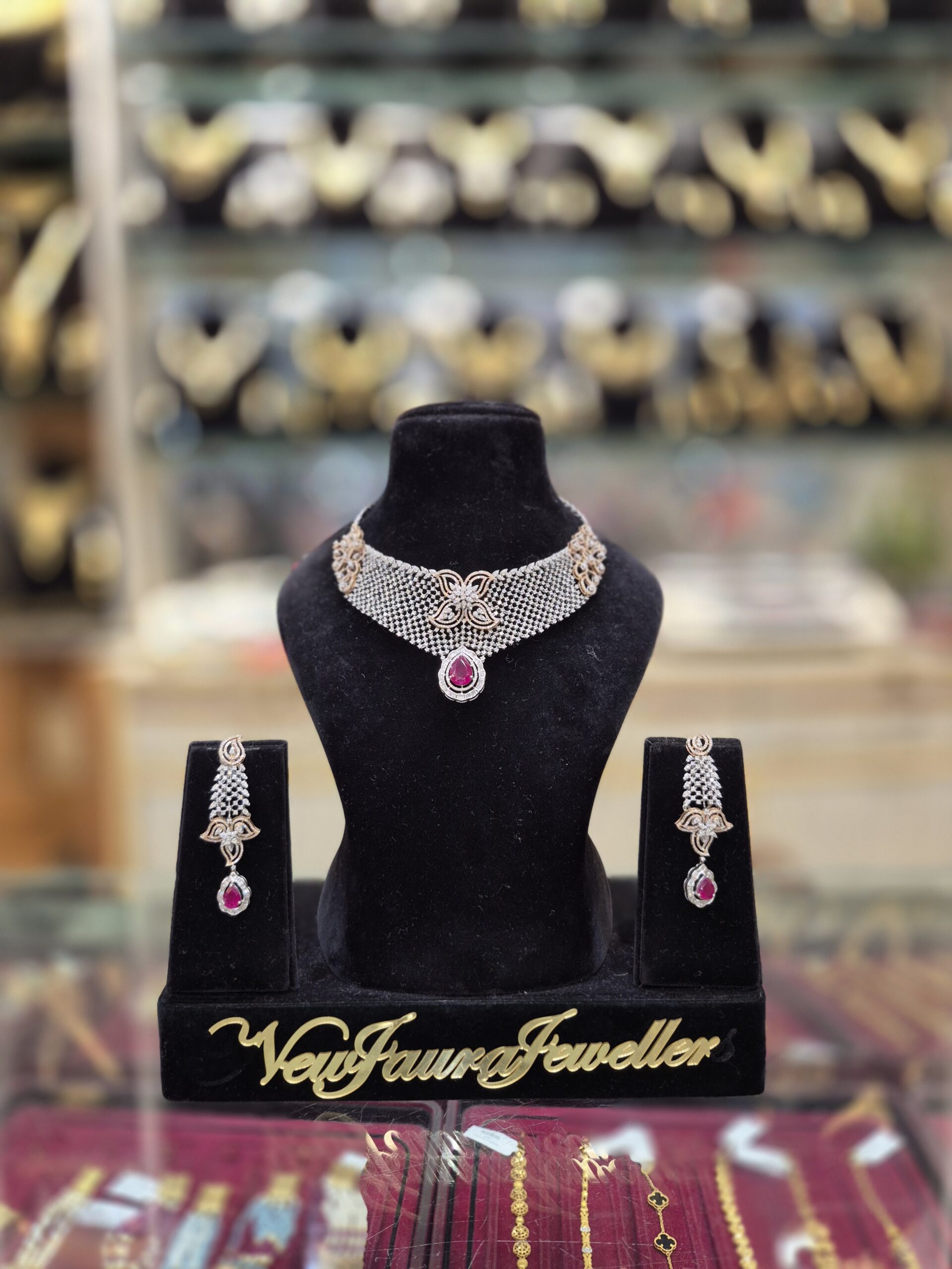 A stunning 18 carat diamond choker crafted with precision and elegance. Designed to sit gracefully at the neckline, it reflects timeless luxury, brilliance, and exceptional craftsmanship.